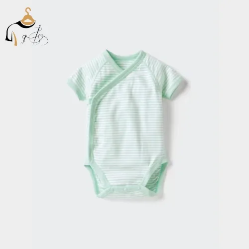 Soft cotton bodysuit for infants, available in solid or striped patterns.